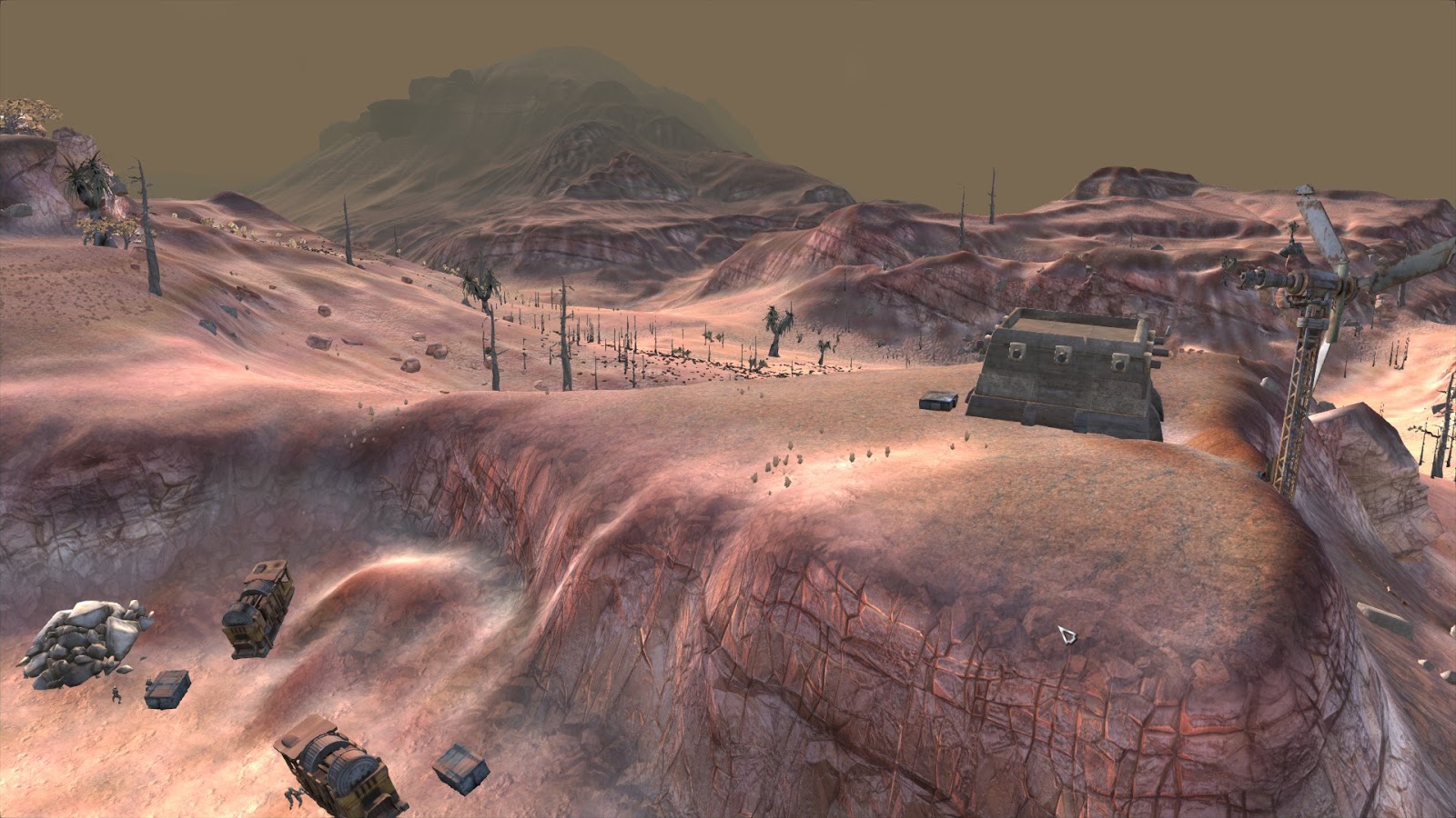 Kenshi - especially for an indie game. So I'll just take a look at my saved games and try to come up with some illustrations here. (Note that all of the screenshots in this post were taken in the Great Desert. The terrain in Kenshi